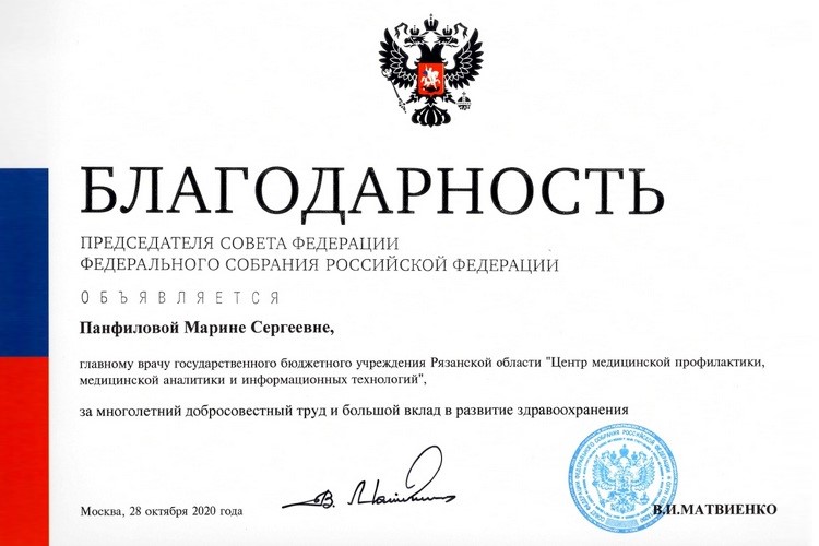Благодарность Председателя Совета Федерации